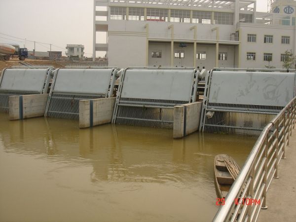 - HQN 型回转式格栅清污机固定安装在泵 站、水电站、污水雨水排放处、自来水取水处 等水工建筑物的进水口处,以拦污栅拦截水流 中所挟带的污飘浮物(树枝、树叶、杂草、生 活垃圾等),并通过回转的齿耙将其